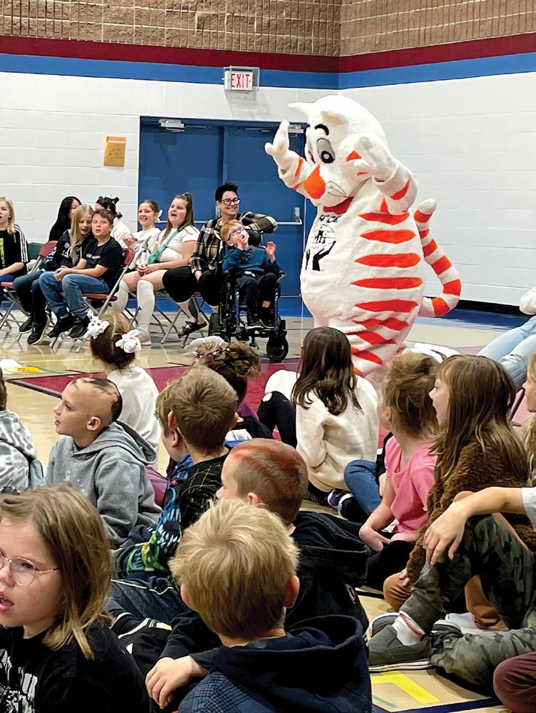gym for our assembly, we listening to the song My Socks Rock. Kinsley, Taylyn and Archie shared our land acknowledgment. Jace, Kallista and Macy talked to us about the Grandfather Teaching of Honesty. Mr. Haslehurst spoke about AR and the top readers and then Fat Cat blessed us with his presence. Thank you, Fat Cat.