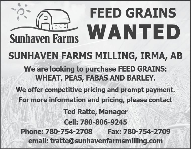 ALBERTA FEED GRAIN: Buying Oats, Barley, Wheat, Canola, Peas, Screenings, Mixed Grains. Dry, Wet, Heated, or Spring Thresh. Prompt Payment. In House Trucks, In House Excreta Cleaning. Vac Rental. 1-888-483-8789.