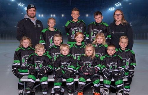 Back Row L-R: Manager Bobbi Bouchier, Coach Les McLaughlin, Berkley Hafso, Harrison Anderson, Jaxon Larson, Coach Joel Christensen, and Manager Shantell Larson. Middle row L-R Gunnar Cannan, Max Fundytus, Oliver McLaughlin, Bobby Myhovich, Jet Nafziger, and Raylan Dafoe-Clarke. Front Row L-R: Miller Christensen, Preston Anderson, Zander Bouchier, Harper Amundson, and Ashton Maddex.