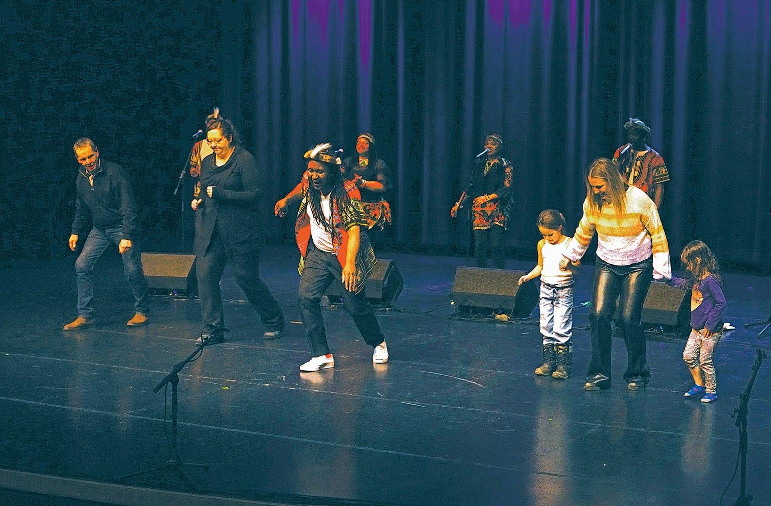 ”Dean Kelley, Melissa with her two daughters were brought up on stage. There was an attempt to teach us a son in dialect that involved ‘clicking’ sounds, not so easy! Lol but the audience particpated.”