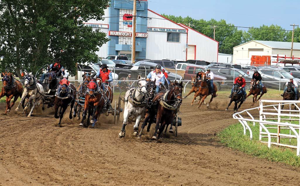 copious amounts of slick muck for the finish line was a true highlight of the event. Friday night’s rodeo was followed by a high-spirited dance at the Elks Hall, where Danny & The Dusters from Eatonia, Saskatchewan, kept the energy high late into the evening. Saturday’s festivities began with a vibrant Downtown Parade themed “Celebrating the Centennial of the Wainwright Clock Tower.” Crowds lined the streets to enjoy a colourful procession that paid tribute to the town’s history and pride.