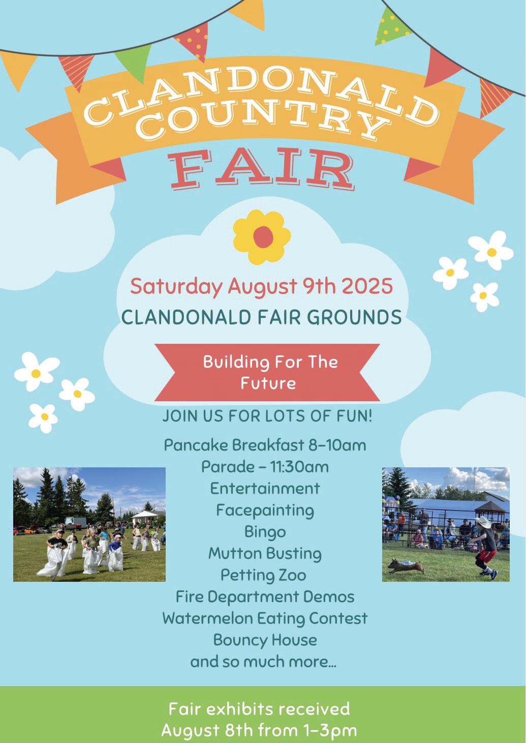 With free admission, the Clandonald Country Fair continues to be a welcom ing event that brings together neigh bours, families, and visitors from near and far. Come out and be part of a cher ished tradition that continues to grow stronger every year.