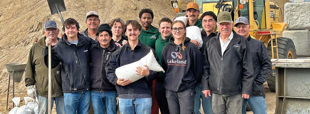 On a windy afternoon on Saturday, October 25, members of the Vermilion Lions Club joined forces with Fire students from Battalion 28 of the Emergency Services Technology program at Lakeland College to fill and deliver 370 sandbags. The sandbags were distributed to several local businesses, including the Vermilion Co-op Gas Bar, Shell Service Station, and the Vermilion Truck Wash.