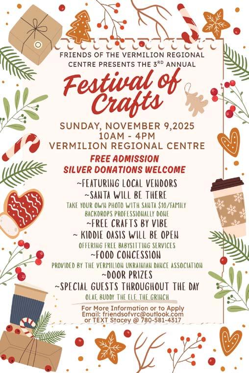 Mark your calendars! On Saturday, November 9, The Friends of Vermilion Regional Centre are hosting the 3 rd annual Festival of Crafts from 10- 4 p.m. at the Regional Centre. Step into the holiday spirit and spend the day exploring local vendors, enjoying delicious food, and entering for fun door prizes.