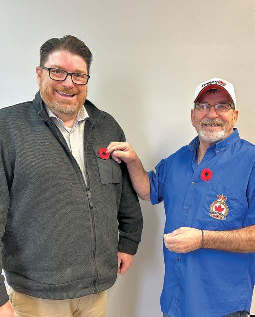 From left, new Vermilion Mayor Rob Snow receiving the first Poppy of the Royal Canadian Legion Poppy campaign from the Royal Canadian Legion Poppy chairman Marcel Lefebvre. “Receiving this poppy from the Legion is an honour. I’m reminded of the deep meaning behind this symbol, buying a poppy is more than a gesture;