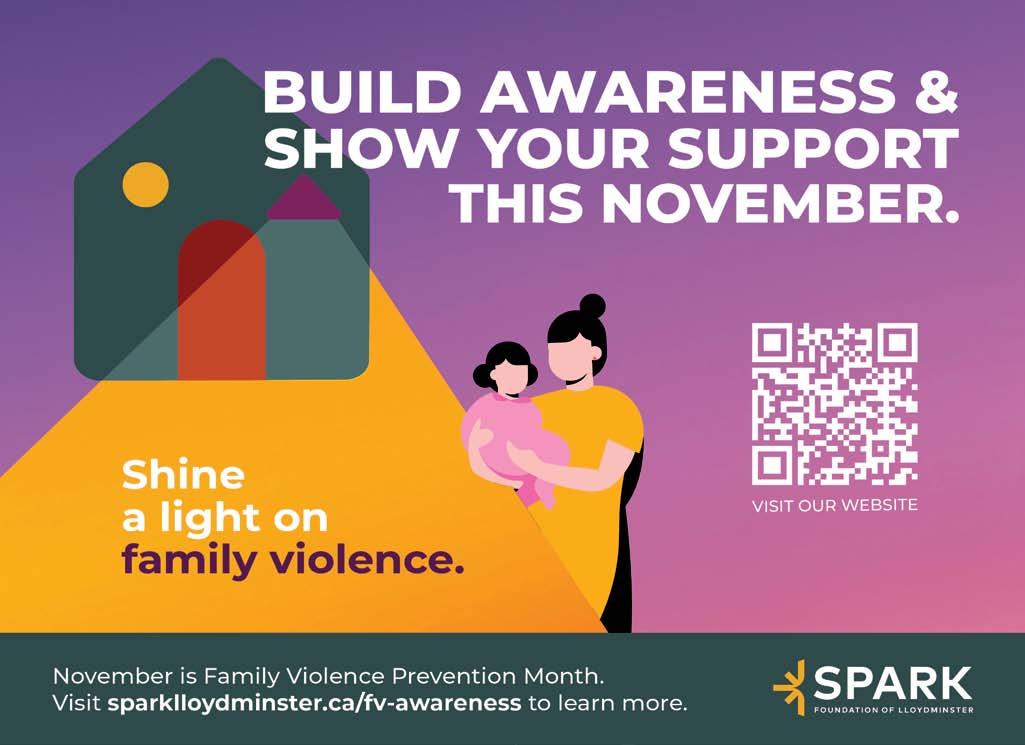 This November, SPARK leads Lloydminster’s Family Violence Prevention Month, a province-wide initiative to raise awareness, inspire action, and support survivors of family and relationship violence. The 2025 theme, “Paint the Town Purple – Shine a Light on Family Violence,” invites everyone to come together in solidarity and hope. Purple, the symbolic color for Family Violence Prevention Month in Alberta, represents courage, survival, and strength for victims and survivors.