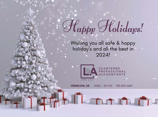 Wishing you all a joyful holiday season from our community to yours! May your days be filled with warmth, laughter, and the love of family and friends. May the New Year bring peace, happiness, and good health! Box 1265, Dewberry, AB Ph: (780) 847-4166 Fax: (780) 847-4944 VERMILION BREEDERS CO-OP Rick Rewuski