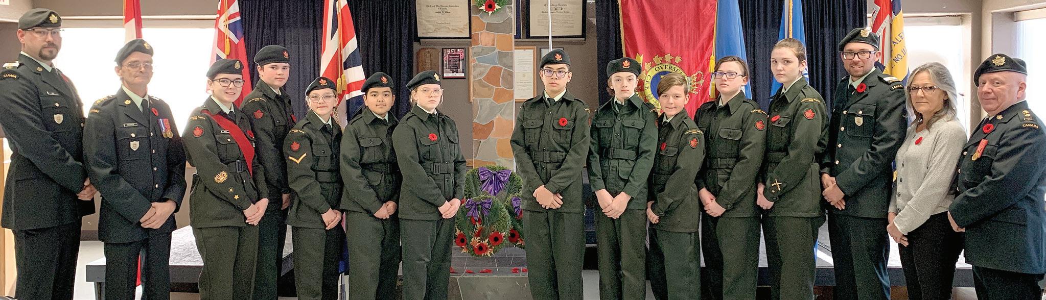 Top photo, Royal Canadian Legion members from Branch 11 during the Remembrance Day Ceremony that was held at the Vermilion Legion Branch. Bottom photo, members of the Vermilion Cadet Corp at the Remembrance Day Ceremony. Photos Lorna Hamilton
