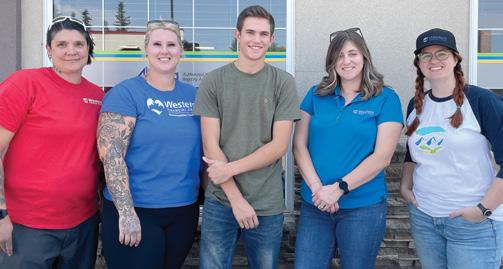 From left, Andrea Popiel, Shania Chanasyk, Boston Crate, Kelly Parsons-Flaata, and Kaylee Letawsky from Western Financial after preparing lunch.