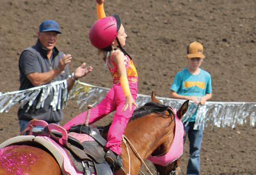 afternoon giving fans a thrill with the many events including steer riding, barrel racing, bareback bronc, tie-down roping, saddlebronc, team roping, and the adrenaline-pumping bull riding. There were also junior riders participating in events such as junior bull riding, steer riding, novice horse riding, and junior barrel racing, as well as pee wee barrels. The intermission had the highly anticipated mutton bustin’ and