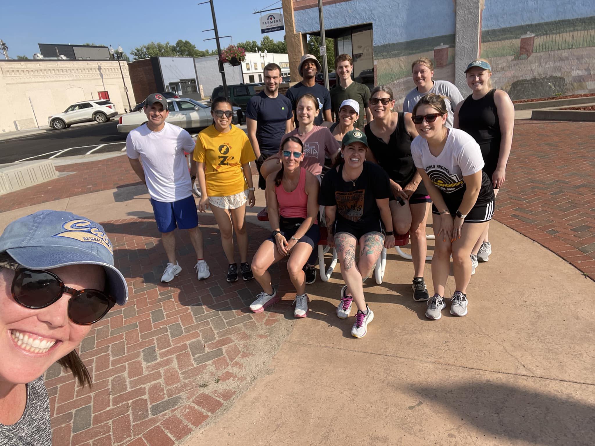 at The Platz when the weather is nice. Routes are selected beforehand, and participants have the choice to run, jog, or walk. Sometimes, the group even heads to a local watering hole for an after-run drink! Everyone is welcome, and interested individuals can check out the Vermillion Area Running Group Facebook page to learn more.