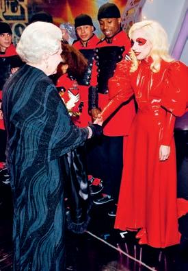Když Lady Gaga vystupovala na Královském varieté, šla se pozdravit s tehdejší královnou Alžbětou II. v šatech z červeného latexu. Jejich střih byl inspirovaný dobou alžbětinskou, královna nevypadala pobouřeně a k popové dračici to navíc tak nějak sedí.