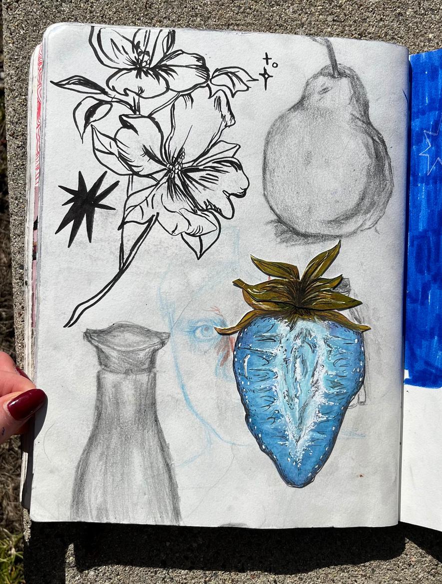 ONE MISTAKE I MADE IN THE START OF MY SKETCHBOOKING IS PUTTING TOO MUCH PRESSURE ON MYSELF TO CREATE A PERFECT SPREAD, ONCE I LET GO OF THIS, MY CREATIVITY FLORUISHED, I BEILVE THIS MINDSET CAN BE APPLIED TO ANYTHING.
