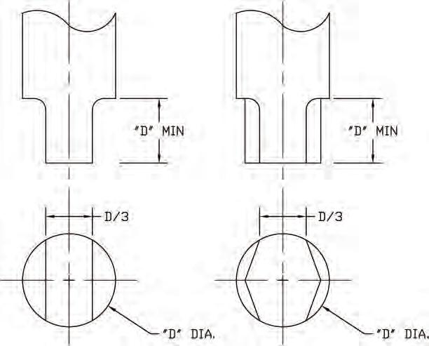 Allows air or fluid to escape. Pressure relief flats can be added to reversible cylindrical style gages to allow air or fluid to escape when gaging blind holes. Depth of flat is .010" to .015".