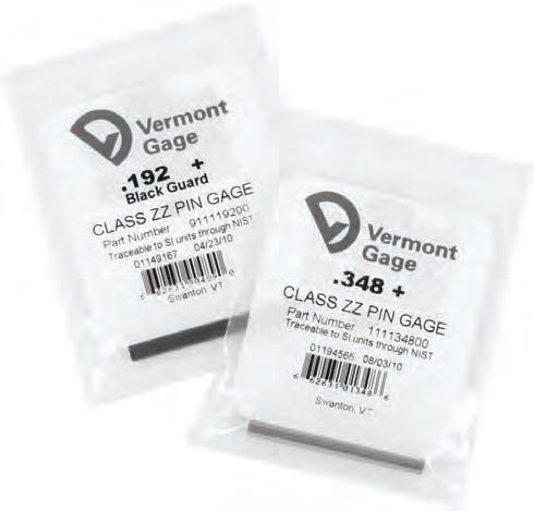 Make quick and accurate measurements with Vermont Gage Pin Gages. Measure hole sizes. Calculate distances between holes. Gage slot widths. Check loca ons. Use for Go/ NoGo gaging. Size in micrometers and snap gages. These economical gages give you added wear life, unlike closer tolerance gages available on the market today.