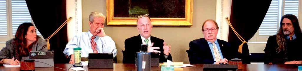 Rep. Peter Conlon, D-Cornwall, center, questions Education Secretary Zoie Saunders as she speaks before a joint committee hearing with the House and Senate education committees and the House Commerce and Economic Development Committee at the Statehouse in Montpelier on Tuesday, Feb. 25.