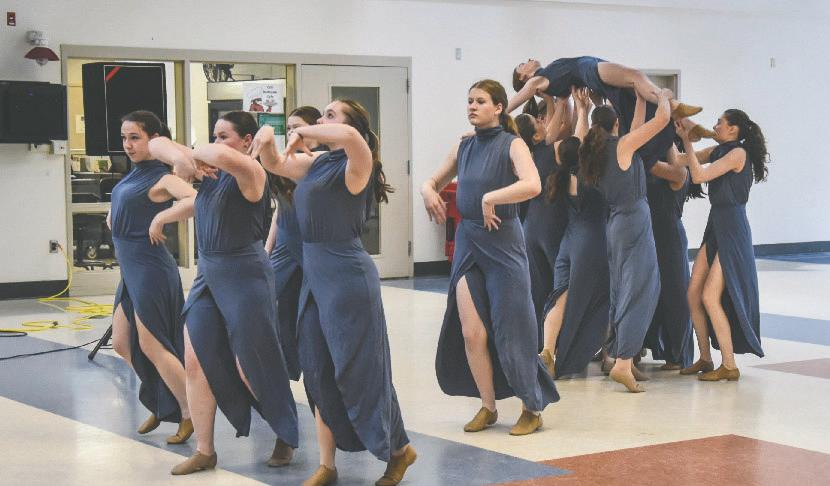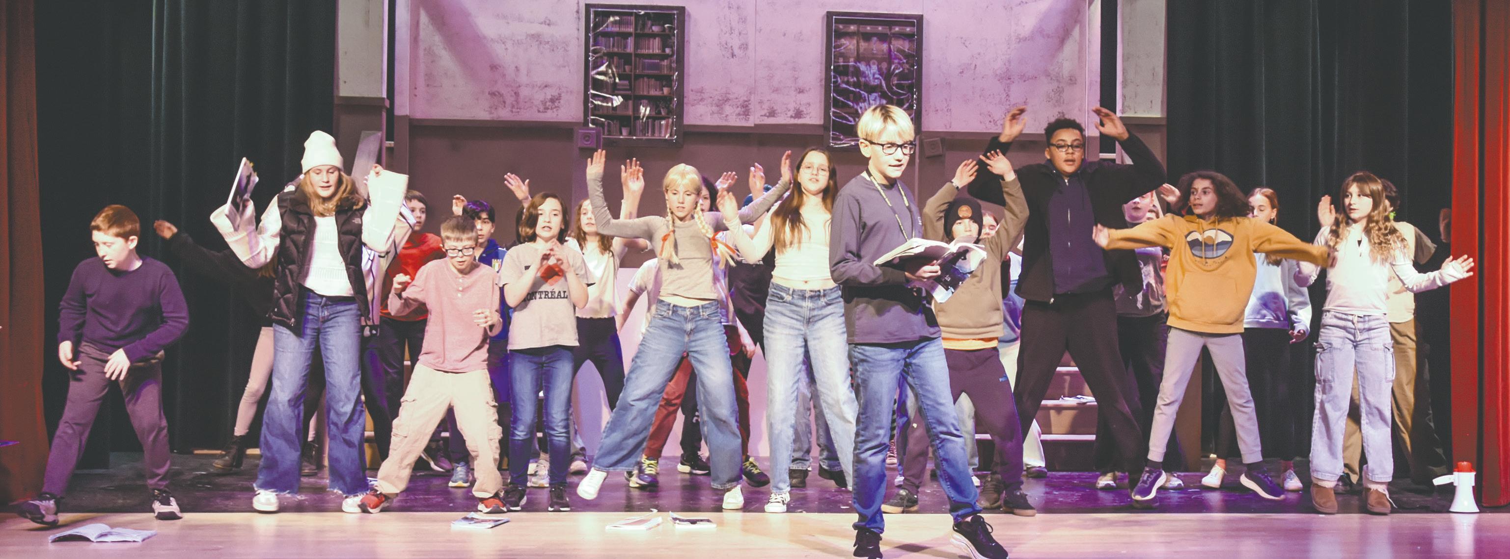 Williston Central School students rehearse Monday for their upcoming production of ‘Matilda Jr.’ Front and center, Aiden Desautels as Agatha Trunchbull leads the cast in the number ‘The Smell of Rebellion.’ The show runs April 9-11 in the school auditorium. See more information and photos on Page 13.