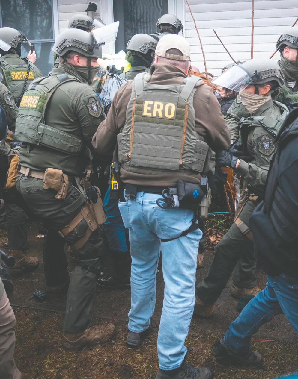 federal immigration officers, notably helping clear a path for the federal officers to enter the Dorset Street house.