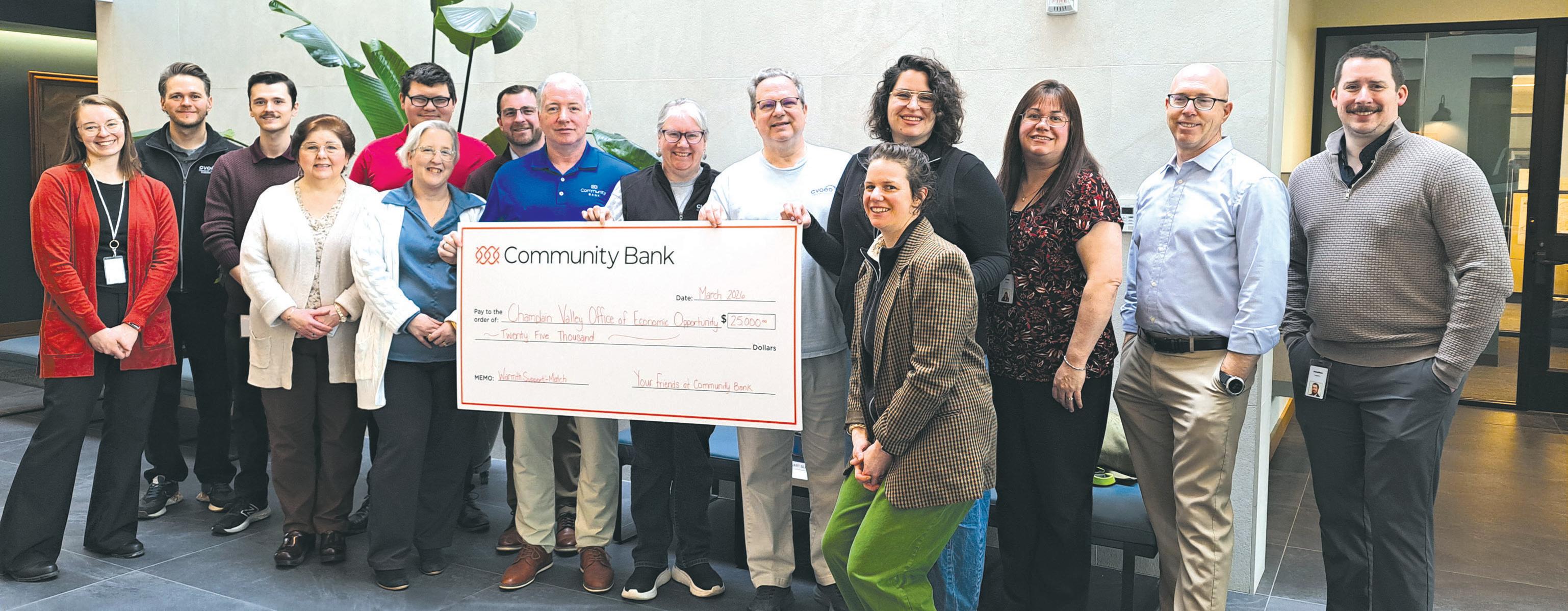 Community Bank recently presented a check to the Champlain Valley Office of Economic Opportunity for $25,000 for the agency’s “Warmth Support Program.” The donation was part of CVOEO’s fundraising of about $60,000 to help people with winter home heating. OBSERVER COURTESY PHOTO