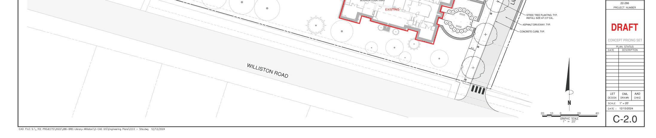 Several trees on the green are slated to be removed in the plan, though most of the trees along Williston Road and those between the library and Central School Drive would be retained. A large poplar not far from the current entrance would be removed. In its place, three street trees are envisioned along that portion of Library Lane.