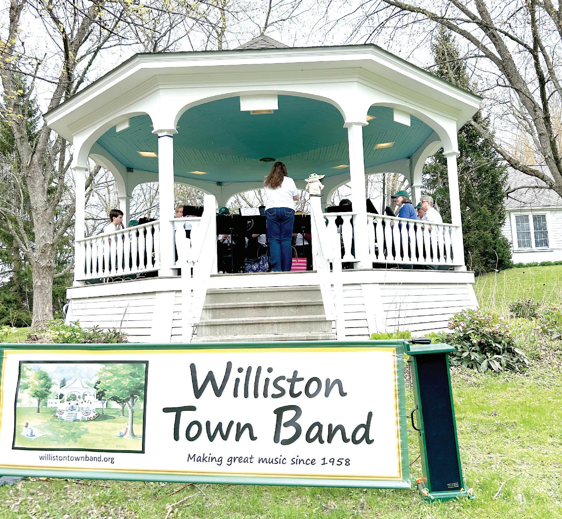 they invited Kathy Schaw, president of the Williston Town Band, to discuss the needs of the group. Built in 1976 and repaired in 2019, the bandstand on the green served as the regular performance space for the town band until 2022. That’s when band membership grew sufficiently large that the group could no longer squeeze into the space.