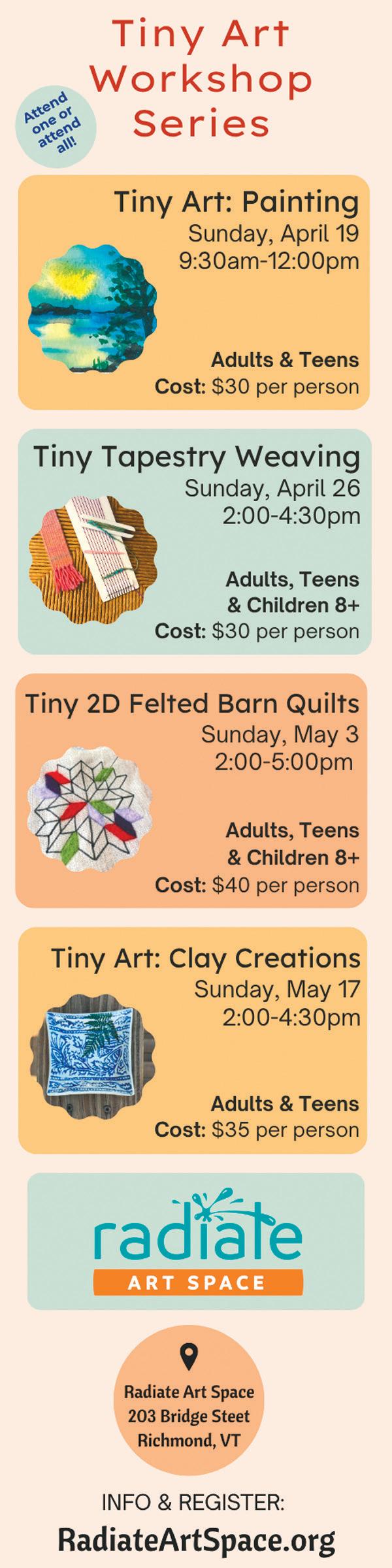 Floral design workshop. Burlington Garden Club. 1 p.m. Faith United Methodist Church, South Burlington. bgcvt.org.