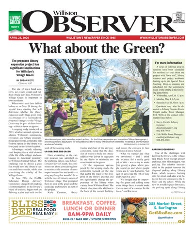 Another group whose interests are closely tied to the status of the library and village green is the Williston Historical Society. Aron Merrill, president of the group, served as an official member of the Schematic Design Advisory Committee.