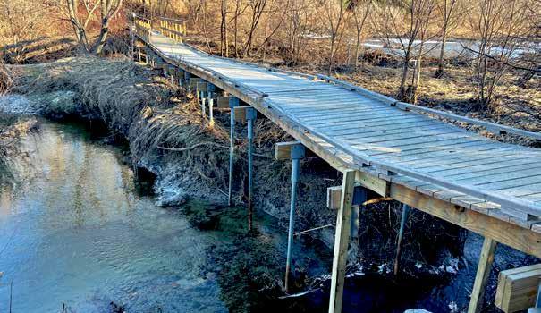 the damaged section last fall to prevent unsafe crossings and has been working with state and federal wetland regulators on permitting its reconstruction. Plans call for streambank stabilization and riverbend rerouting to increase the bridge’s flood resilience. Anticipated excavation and tree-clearing triggered an Act 250 amendment process that pulled in the U.S. Army Corps of Engineers and the U.S. Fish and Wildlife Service, according to Williston Senior Conservation Planner David Moroney.