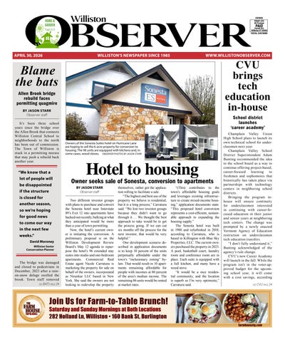 Now, the hotel’s current owner is initiating the conversion. A preliminary proposal is on the Williston Development Review Board’s May 12 agenda to repurpose the hotel’s 96 extended stay suites into studio and one-bedroom apartments. Commercial Real Estate agent Nicole Carratura is marketing the property for sale on behalf of the owners, incorporated as Nirankar LLC based in New York. She said the owners are not looking to redevelop the property