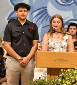 Jacob Tischler, below, actor and former CVU student, speaks to the class. Left, Lauren Knudsen (R) and Chase Leonard give the farewell address. See more pictures on Page 4. OBSERVER PHOTOS BY AL FREY