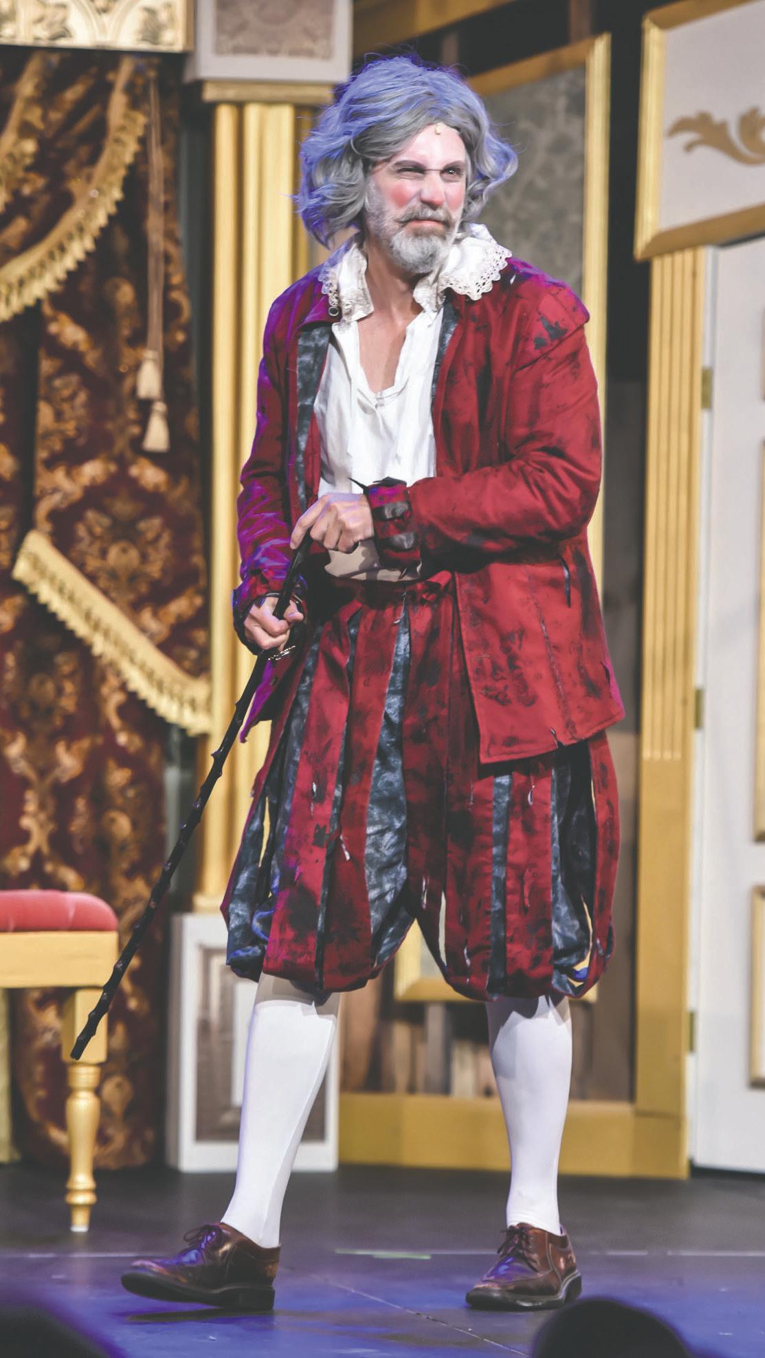 CLOCKWISE (top to bottom): The cast performs the closing number in Vermont Repertory Theatre's production of Moliere's 'The Miser' at the Isham Barn Theatre on June 11. Mariane (Keeley Agan, left) and Frosine (Brit Flynn, right) sing of Mariane's arranged marriage to Harpagon, the Miser (Christopher Ziter). Harpagon reflects on his life's situation. Maitre Jacques (Eamon Lynch, left) is joined on stage by Valere (Jayden M. Choquette, center) and Elise (Hannah Normandeau, right).