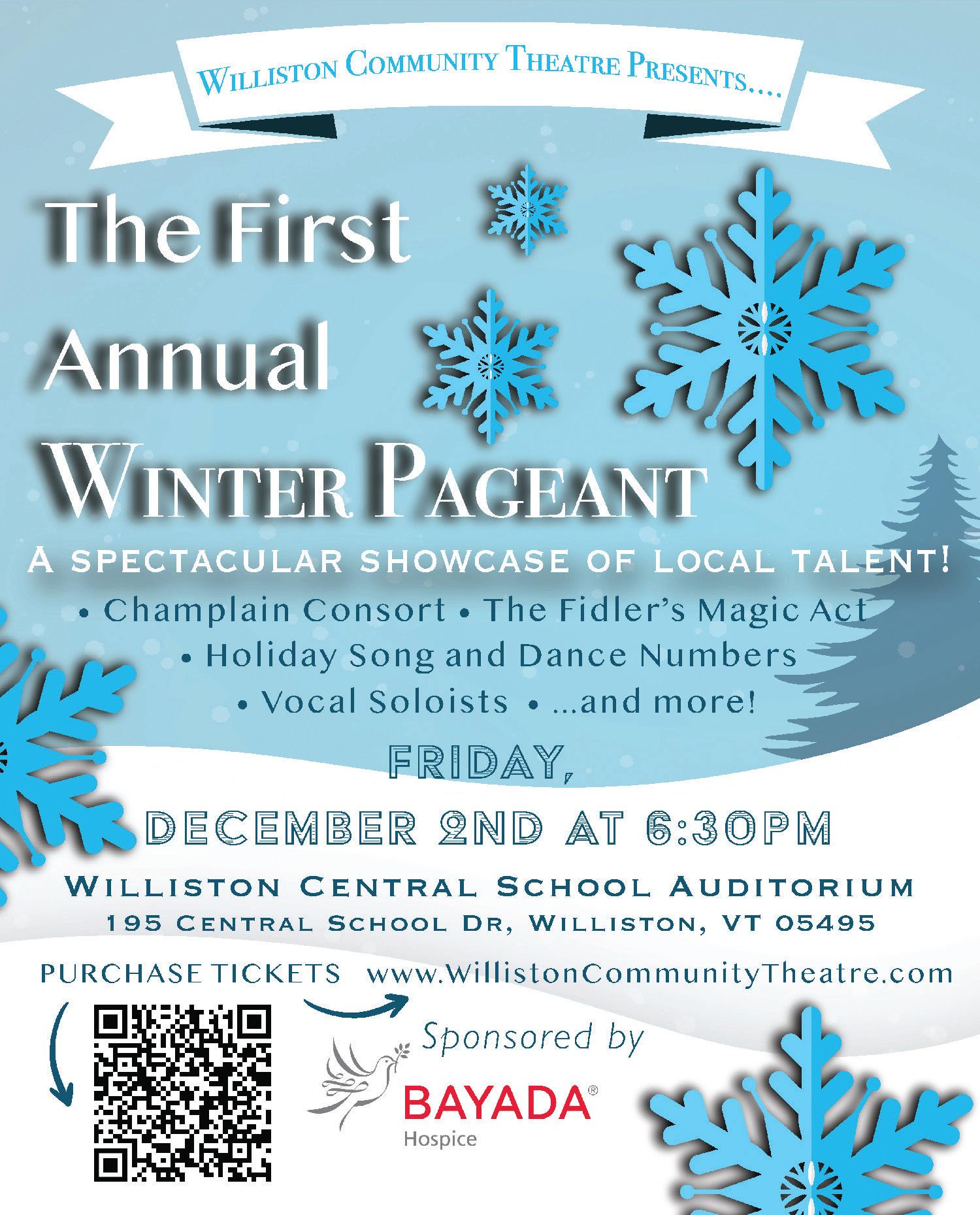 The annual Williston Community Tree Lighting is scheduled for 4:305:30 p.m. Dec. 4 at the Town Gazebo in the village.
