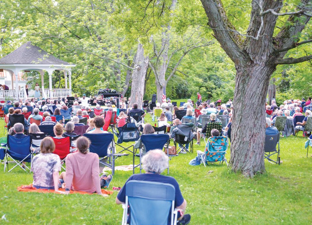 ABOVE: Jen Reardon Brown checks out a selection of books with Library Trustee Ann Park at Williston’s Dorothy Alling Memorial Library’s annual Fourth of July book sale. ABOVE RIGHT: Folks check out the titles available at the fundraising sale. BELOW: Tables of books are for sale in the Dorothy Alling Memorial Library annual Fourth of July fundraiser. BELOW RIGHT: David Horn sings ‘The Teddy Bears’ Picnic’ at Williston’s annual Fourth of July Ice Cream Social and Town Band concert. The singing of the tune — with a melody written by John Walter Bratton in 1907 and lyrics later added in 1932 by Jimmy Kennedy — is a Williston Independence Day tradition.