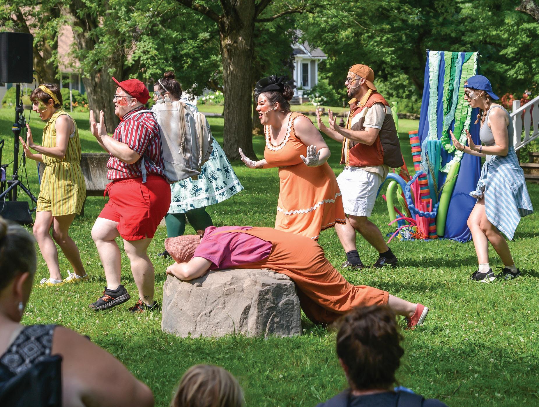 The Lyric Theatre presents ‘The Rainbow Fish Musical’ outside Williston’s Dorothy Alling Memorial Library on Saturday. Starfish (Megan Rose) is in the foreground on the rock as the rest of the cast sings. OBSERVER PHOTO