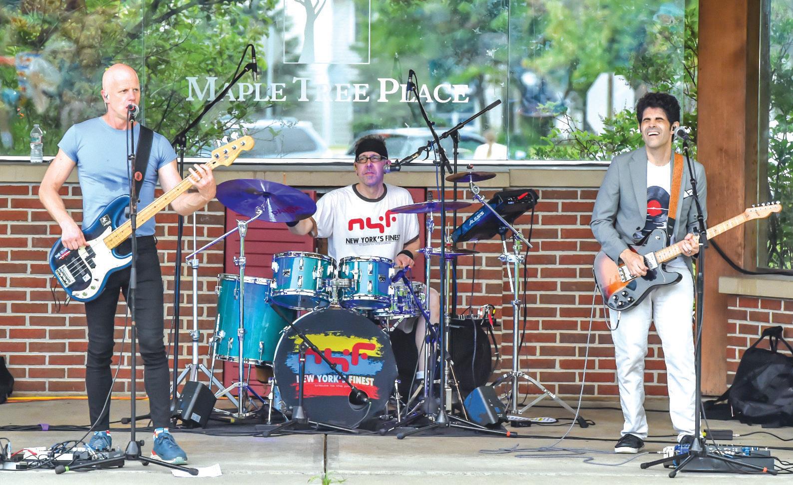 ‘New York’s Finest’ brought the sound of ‘The Police’ to concert-goers at Maple Tree Place on Thursday. ‘NYF’ features Mark Rinzel (left) who plays bass and sings like 70’s/80’s era Sting, Alan Camlet on drums (middle), and Oscar Bautista (right) guitarist. This was the second of six Concerts on the Green happening at Maple Tree Place on Thursdays this summer. The next concert will be July 25, a Garth Brooks tribute.