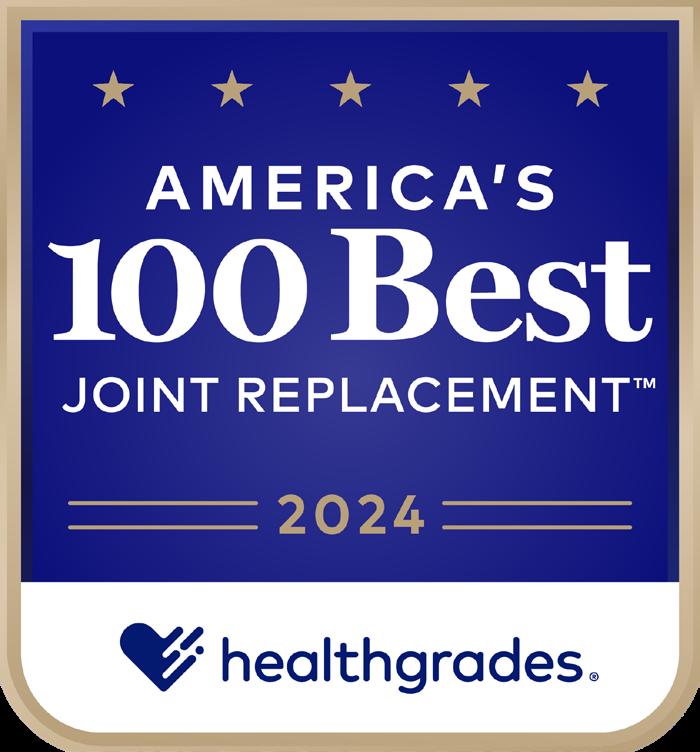 America’s 100 Best Hospitals for Joint Replacement™ for 3 Years in a Row (2022-2024) America’s Joint Replacement Excellence Award™ for 11 Years in a Row (2014-2024)