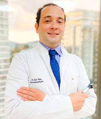Temperaturas frias com ambiente seco, típico da estação atual, colaboram com a piora de doenças respiratórias como rinite, sinusite, faringite e laringite. Isso ocorre porque o frio, junto do ressecamento das vias respiratórias, promove a dilatação de estruturas internas do corpo e permite a instalação de patógenos (vírus, bact érias, fungos) e alérgenos (ácaros, polens, poeira, fuligem). Quando instalados, há uma resposta exacerbada de mecanismos de proteção do corpo. Assim, ocorre aumento de espirros, obstrução/pruridos nasais, cefaleias (dor de cabeça), tosse e respiração oral. O mé dico otorrinolaringologista Luis Felipe Santos atua há mais de dez anos com foco no combate e controle de tais desconfortos. Graduado em medicina pela Universidade Estadual de Campinas (Unicamp) e otorrinolaringologista pelo Hospital Santa Marcelina. Av. Copacabana, 112, sl 709, Alphaville (11) 94909-3093, clinicasapphire.com.br @luis.otorrino