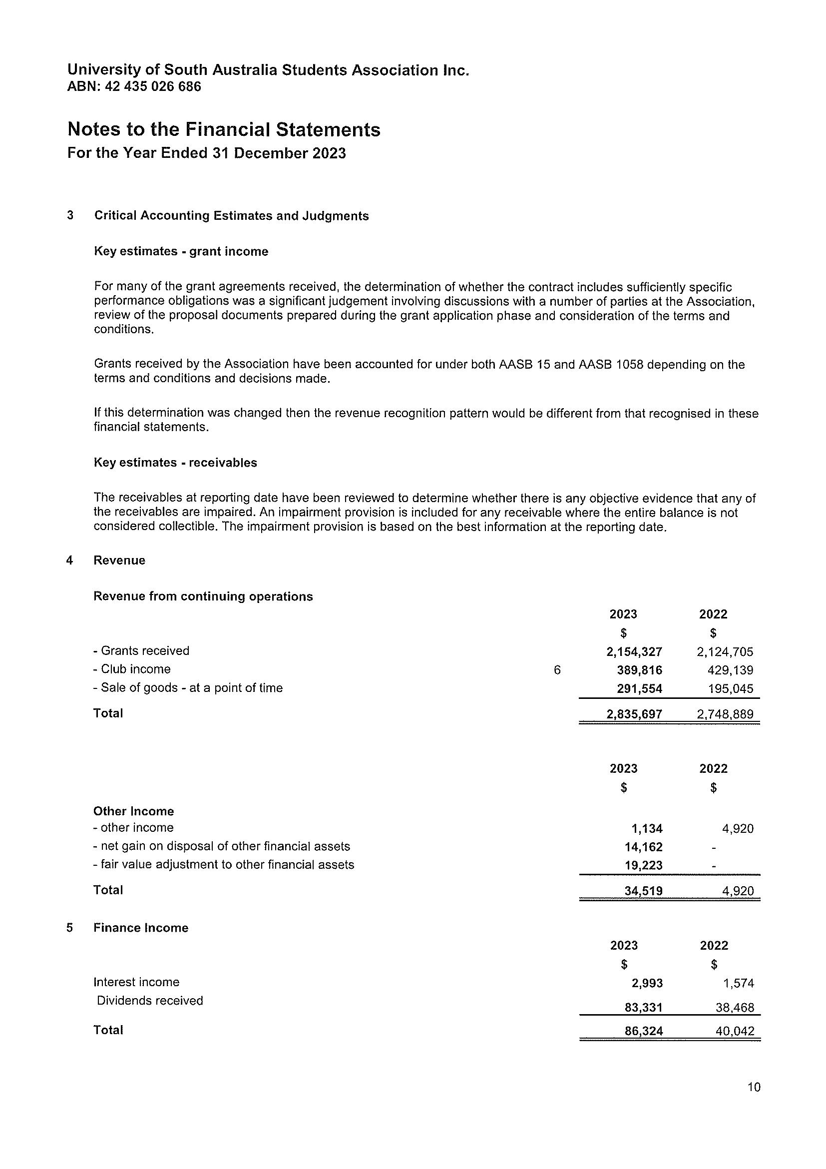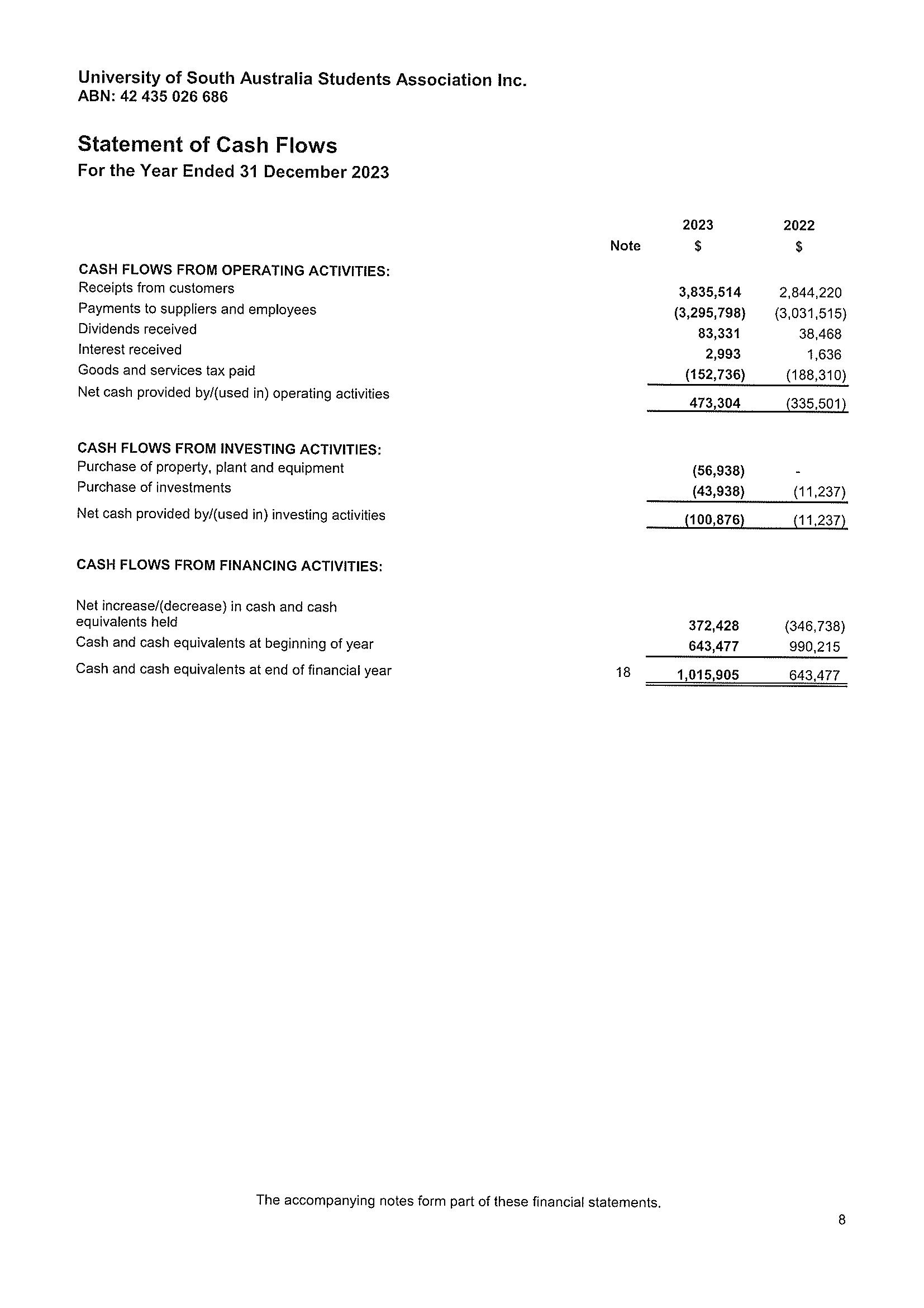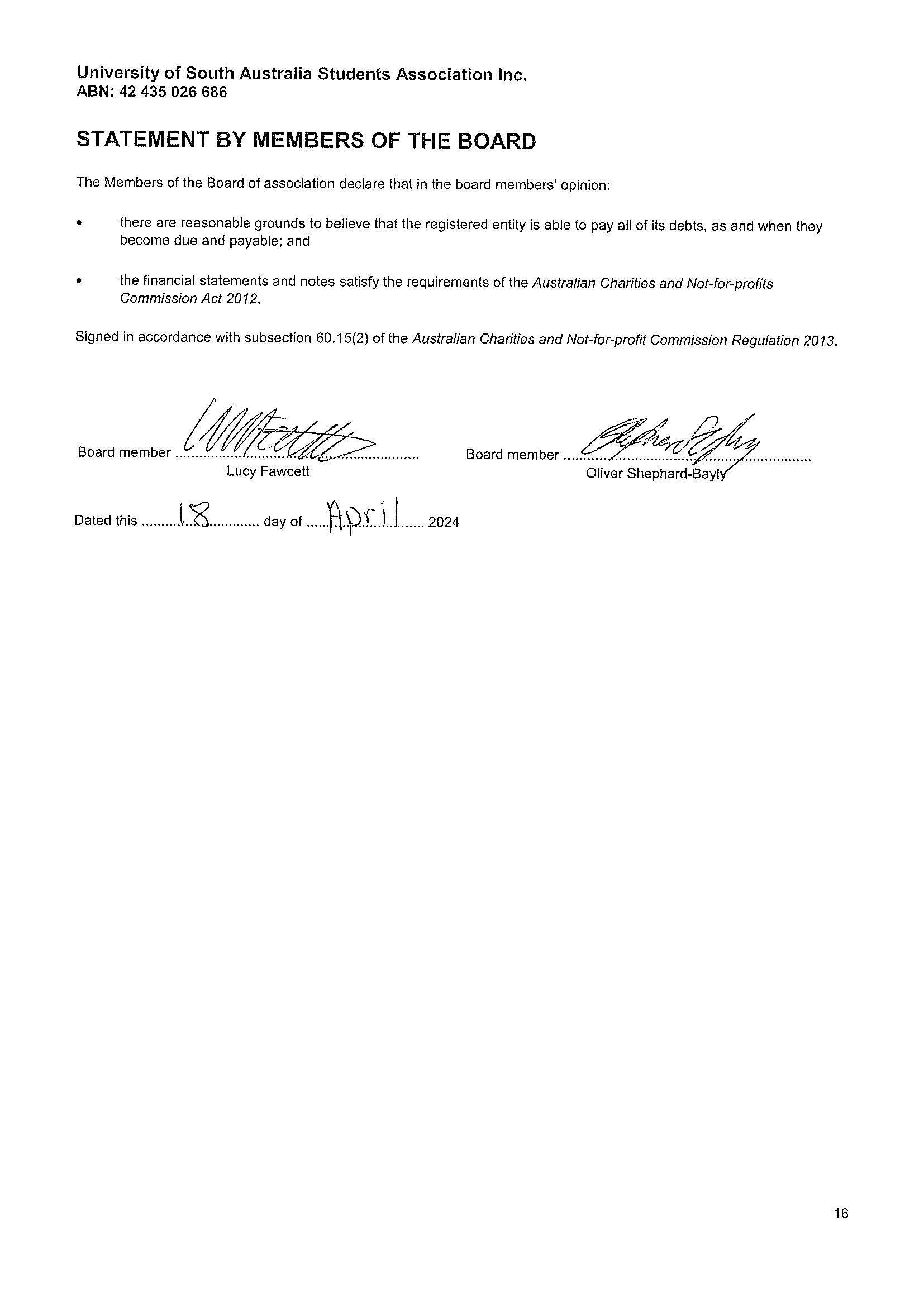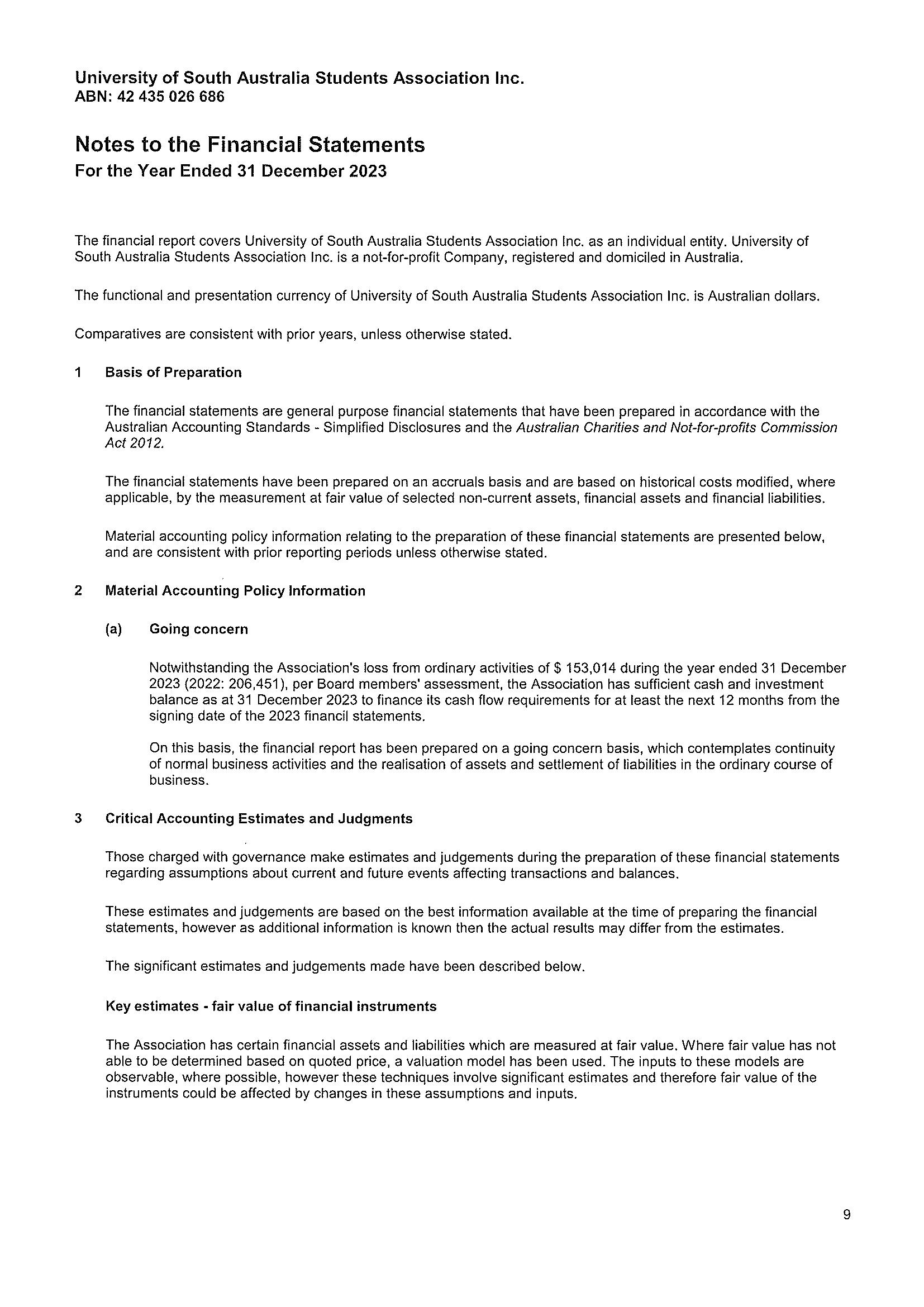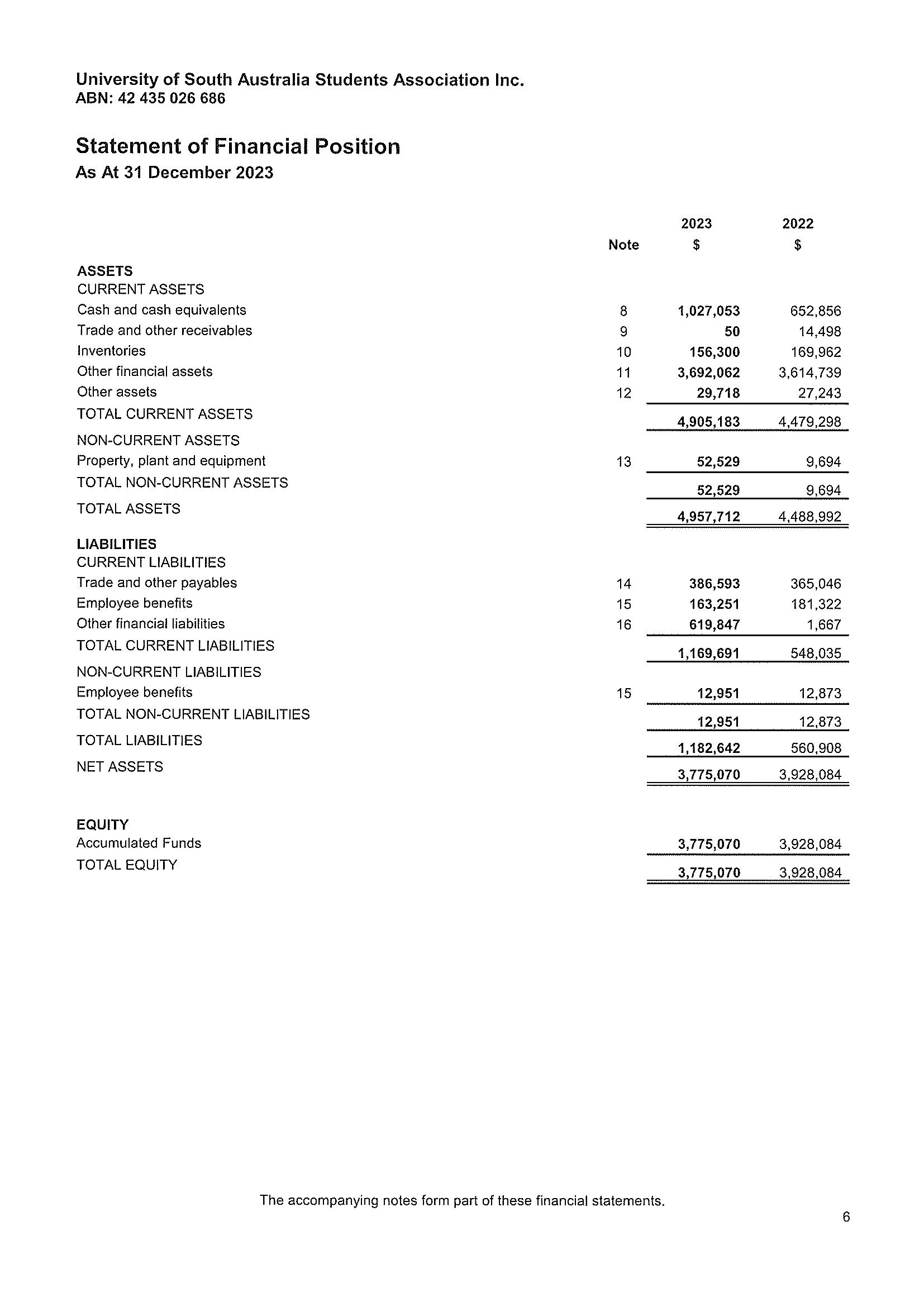 We have audited the financial report of University of South Australia Student Association Inc (“the Association”), which comprises the statement of financial position as at 31 December 2023, the statement of comprehensive income, statement of changes in equity and statement of cash flows for the year then ended, and notes to the financial statements, including a summary of significant accounting policies and director’s declaration