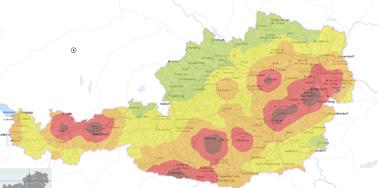 HORA-Zonen: Bundesministerium für Land- und Forstwirtschaft, Regionen und Wasserwirtschaft. Basislayer: OpenStreetMaps.