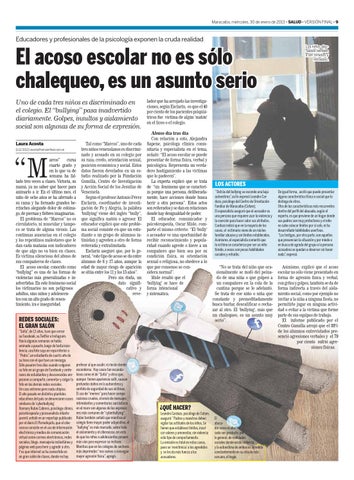 El acoso escolar no es sólo chalequeo, es un asunto serio Uno de cada tres niños es discriminado en el colegio. El “bullying” pasa inadvertido diariamente. Golpes, insultos y aislamiento social son algunas de su forma de expresión. Laura Acosta (LUZ 2012) lacosta@versionfinal.com.ve