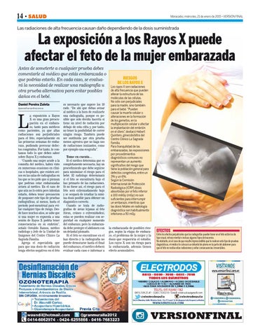La exposición a los Rayos X puede afectar el feto de la mujer embarazada Antes de someterte a cualquier prueba debes comentarle al médico que estás embarazada o que podrías estarlo. En cada caso, se evaluará la necesidad de realizar una radiografía u otra prueba alternativa para evitar posibles daños en el bebé. Daniel Pereira Zuleta dpereira@versionfinal.com.ve