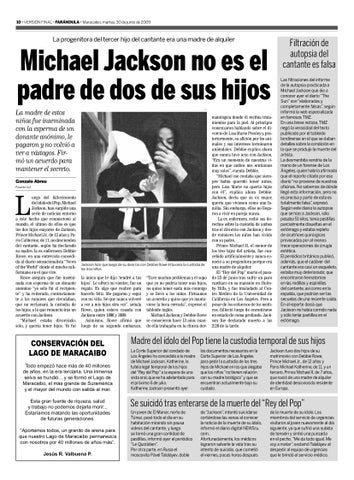 uego del fallecimiento del ídolo del Pop, Michael Jackson, han surgido una serie de noticias entorno a éste hecho que conmocionó al mundo, el último de ellos es que los dos hijos mayores de Jackson, Prince Michael Jr., de 12 años y Paris Catherine, de 11, no descienden del cantante, según ha declarado su madre, la ex enfermera Debbie Rowe, en una entrevista concedida al diario sensacionalista “News of the World” desde el rancho californiano en el que vive. Rowe asegura que fue inseminada con esperma de un donante anónimo “yo sólo fui el recipiente” y ha reiterado, contrariamente a los rumores que circulaban, que no reclamará la custodia de los hijos, a la que renunció tras un acuerdo con Jackson. “Michael estaba divorciado, sólo, y quería tener hijos. Yo fui