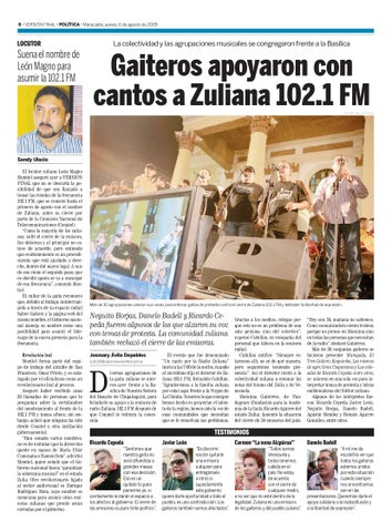 iversas agrupaciones de la gaita zuliana se unieron ayer frente a la Basílica de Nuestra Señora del Rosario de Chiquinquirá, para brindarle su apoyo a la emisora de radio Zuliana 102.1 FM después de que Conatel le retirara la concesión.