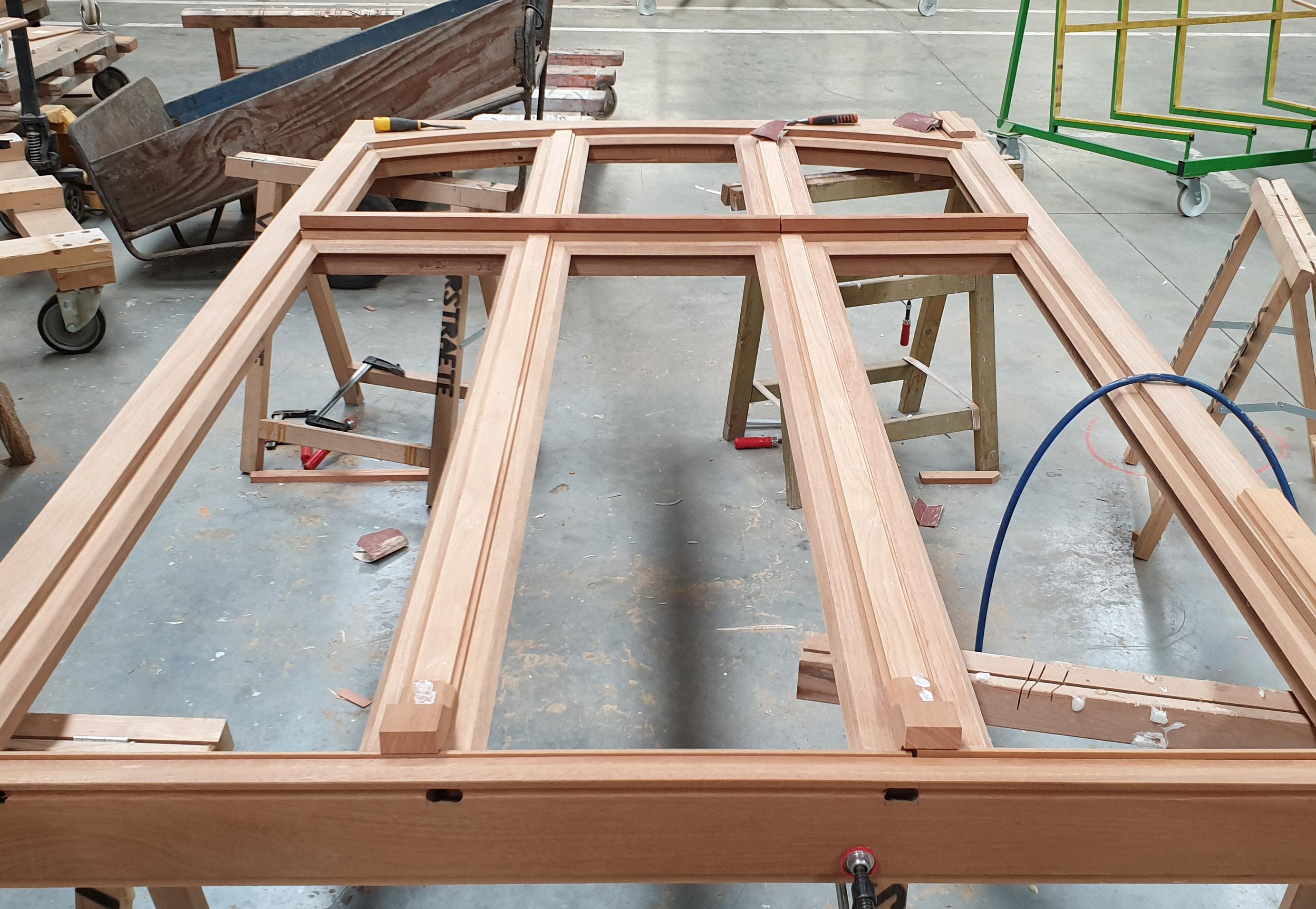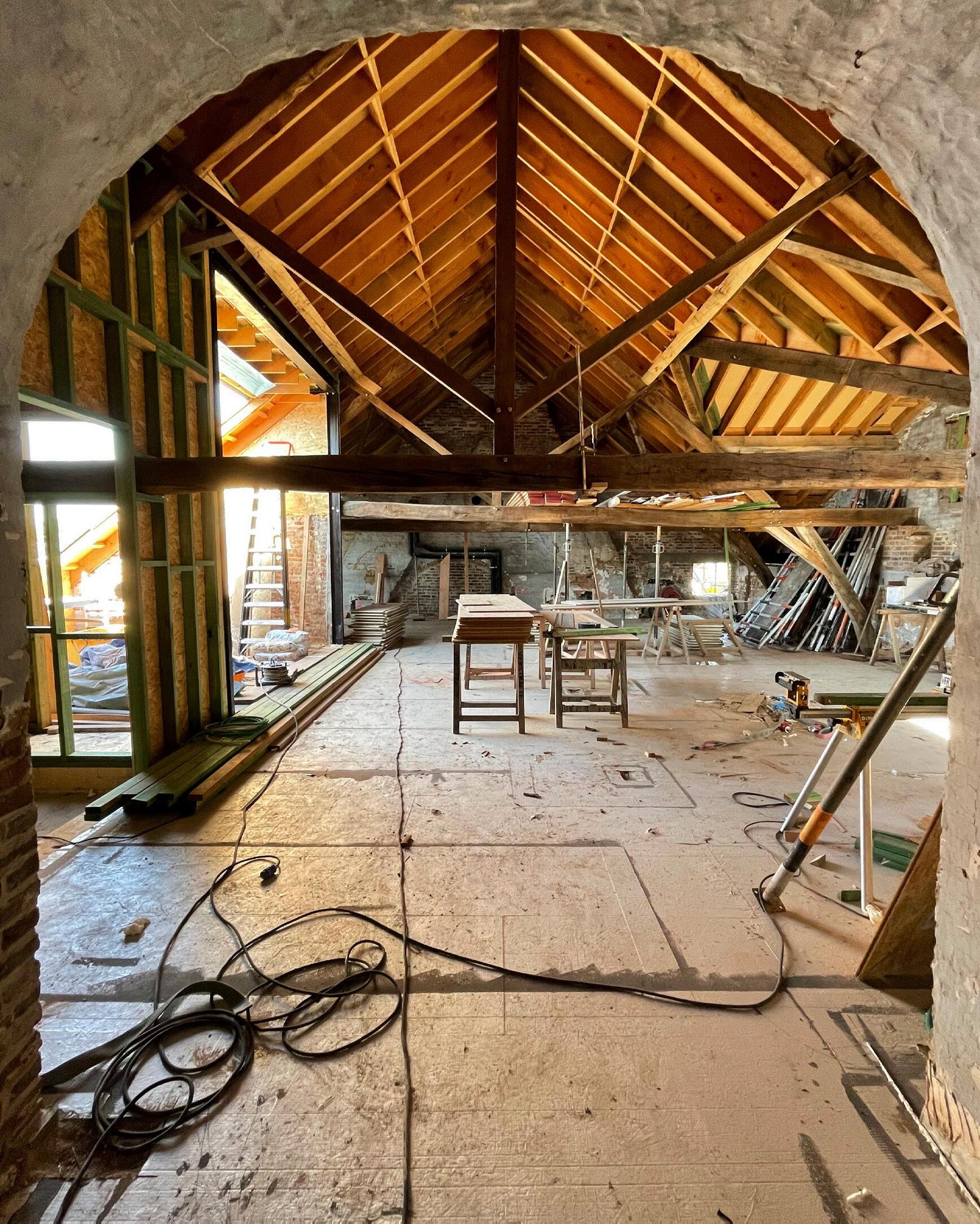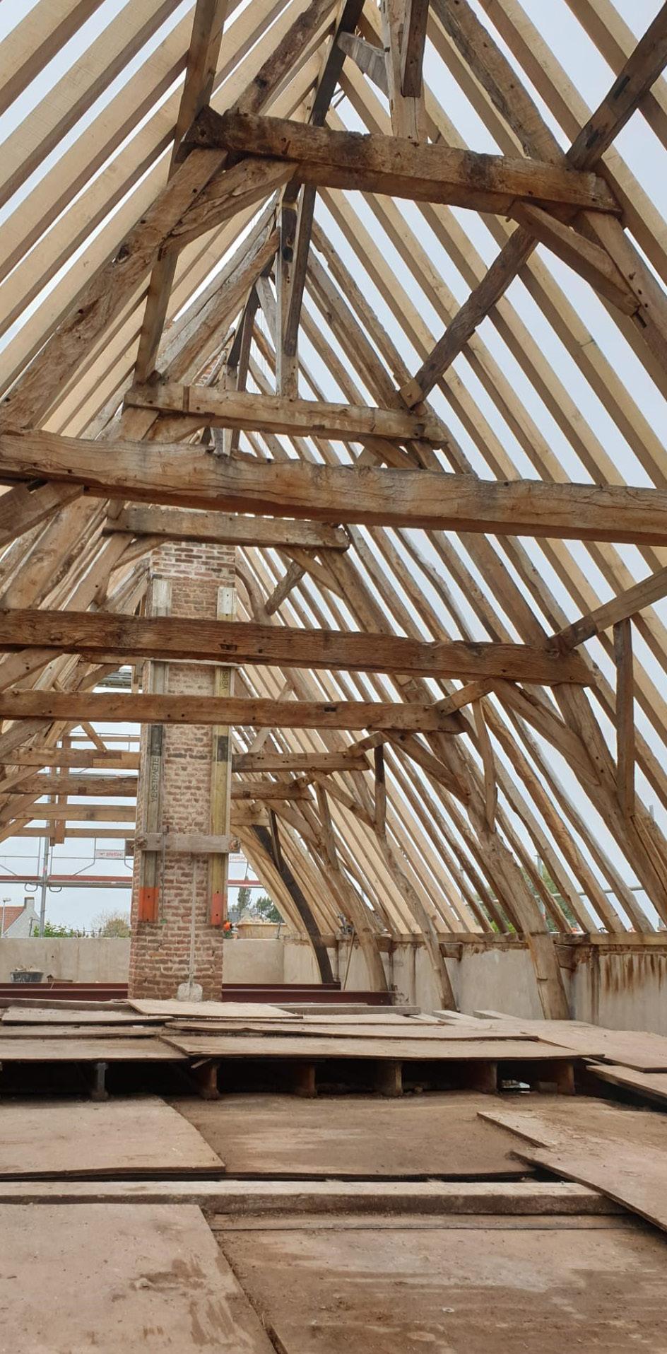 Dankzij onze eigen schrijnwerkerij onder leiding van Carl en de inzet van deze drie sterke ploegen – bouw, hout en dak – voeren we alle werken met eigen mensen uit.