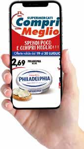 SUPERMERCATI Compri Meglio Offerte valide dal 19 al 30 LUGLIO 2023 SCANSIONA IL QR CODE AVRAI IL VOLANTINO DELLE NUOVE OFFERTE DIRETTAMENTE SUL TUO SMARTPHONE SPENDI POCO E COMPRI MEGLIO!!! MAX 4 PEZZI CON CARTA FEDELTÀ MAX 12 PEZZI CON CARTA FEDELTÀ MAX 12 BIPACK CON CARTA FEDELTÀ PHILADELPHIA GR.250 2,69 PEPSI COLA LT.1,5X2 1,95 DESANTIS OLIO DI GIRASOLE LT.1 1,39 PARMALAT LATTE P.S. LT.1 0,89