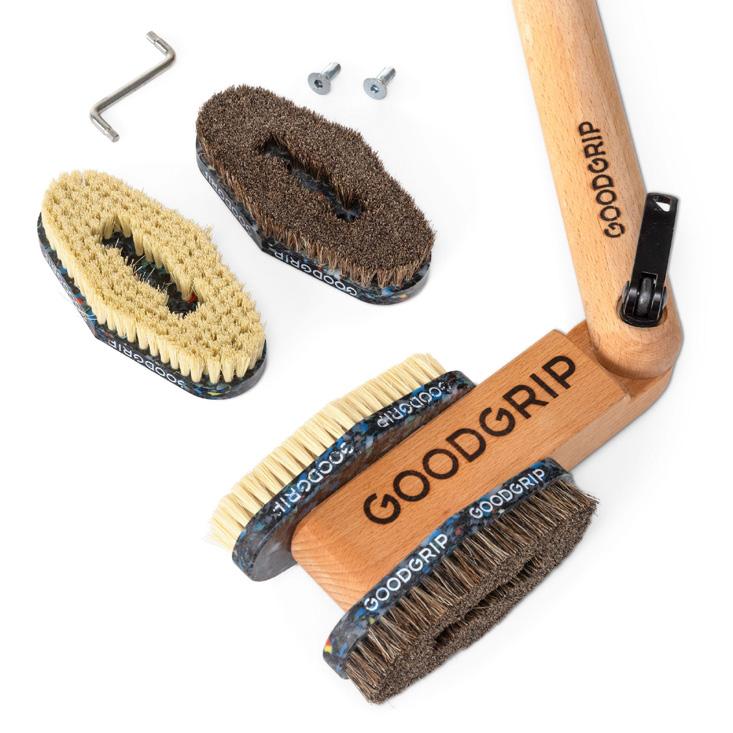 The Stick Brush developed for gyms. This big stick won't break, ensuring long-lasting use. The adjustable brush head rotates 180° and can mount two brushes for versatile cleaning.