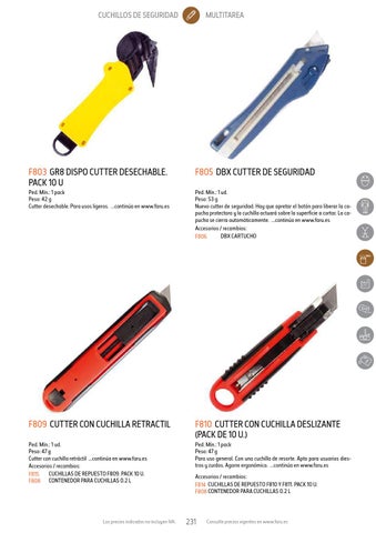 Ped. Mín.: 1 ud. Peso: 47 g Cutter con cuchilla retráctil ...continúa en www.faru.es Accesorios / recambios: CUCHILLAS DE REPUESTO F809. PACK 10 U. F815 F808 CONTENEDOR PARA CUCHILLAS 0.2 L