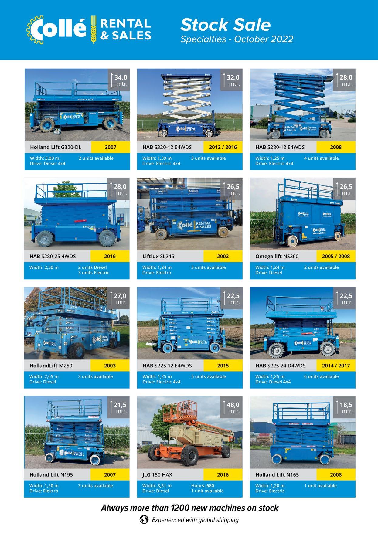 www.vertimac.com More information? ■ Parts +32 56 612 666 ■ parts@vertimac.com ■ Machines + 32 56 772 666 ■ sales@vertimac.com BC-24V25A06 24V CHARGER GENIE, SKYJACK 100-240VAC auto, 50/60Hz * Equivalent: Genie eq. 105739 Skyjack eq. 161827 TI-155NM-H NON-MARKING WHEEL FOR HAULOTTE COMPACT Type 15x5 * Equivalent: Haulotte eq. 2820302890 PCB-J1001091965 ELECTRONIC CARD JLG * Equivalent: JLG eq. 1001091965 PLF-G101394 PLATFORM 8FT GENIE * Equivalent: Genie eq. 101394 S eptember Promo