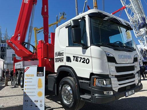 Star of the launch was the T56JE-2 with a maximum working height of 57.7 metres, a maximum outreach of 23.9 metres, and dual platform capacity of 300kg unrestricted and 450kg, with an outreach cut out. Power comes from an 80 volt 840Ah lithium ion battery pack, with standard four wheel drive and steer.