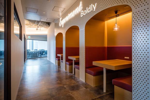 Furthermore, as for newly introduced functions of corridor areas, we created a common name ROJI CORNERS inspired by the Japanese traditional street character. Humans prefer hidden places and corners. In general many activities and communities are born in the “back alleys”. A ROJI CORNER becomes a hub of loose and accidental connections, and it is a place similar to the back alley which can be used in various ways such as working alone, relaxation or having casual meetings. A work style in which users move in various ways shows the possibility of PBW (project-based working) that works for each project, and is considered to be one of the spatial configurations that accelerate future innovation.